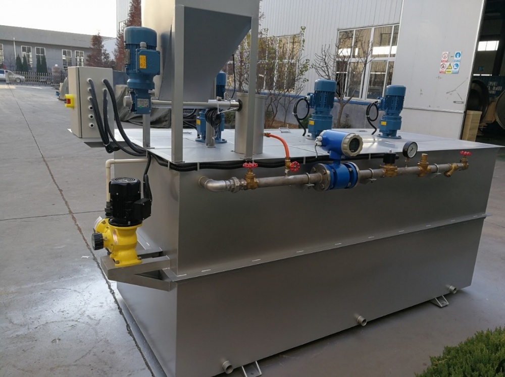 該裝置可將粉狀高分子聚合物(或其他類似粉狀物料)如硫酸鋁、氯化鋁、堿式氯化鋁 (PAC)、硫酸鐵、氯化鐵、聚丙烯酰胺(PAM)、高錳酸鉀、活化硅酸(水玻璃)、粉末活性炭、有機聚合電解質 (Polymers)等配制為規定濃度溶液的成套設備。溶液制備全過程自動、連續。